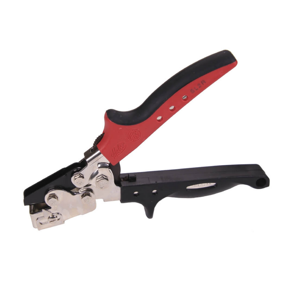 The Malco model SL2R Adjustable Snap Lock Punch can be used as a gutter end cap crimper or for use in creating locking tabs in light sheet metals. A slide adjustment for throat depth allows settings from 1/4 to 5/8 inch (6 to 16 mm) depth. The formed metal cutting jaws and handles are made of hardened stampings. Rust resistant nickel plate and black oxide finishes ensure long service life. Easy one-hand operation make this a versatile tool for the job at hand.