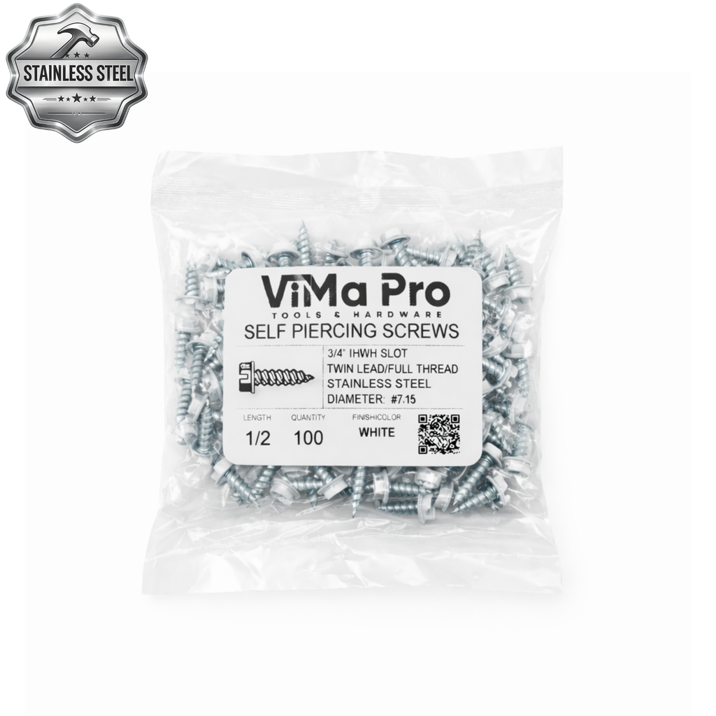 Self Piercing Stainless Steel "Zip" Screws 1/4" Hex Head - #7 x 1/2" White (100/bag)